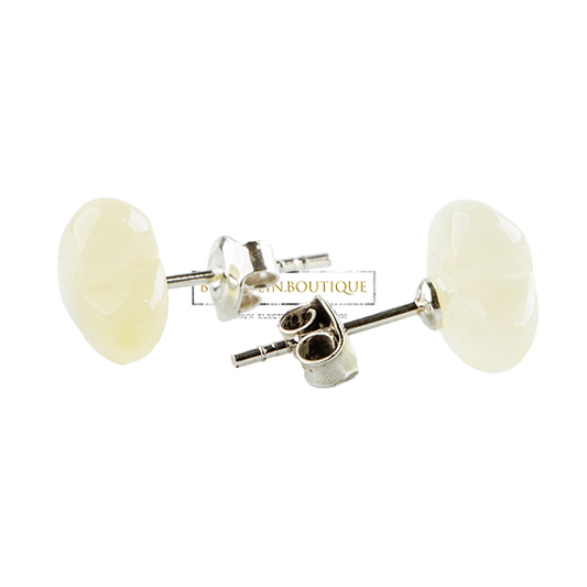Ørestikker i 925 sterlingsølv er besat med ædle, honningfarvede og transparente ravcabochoner