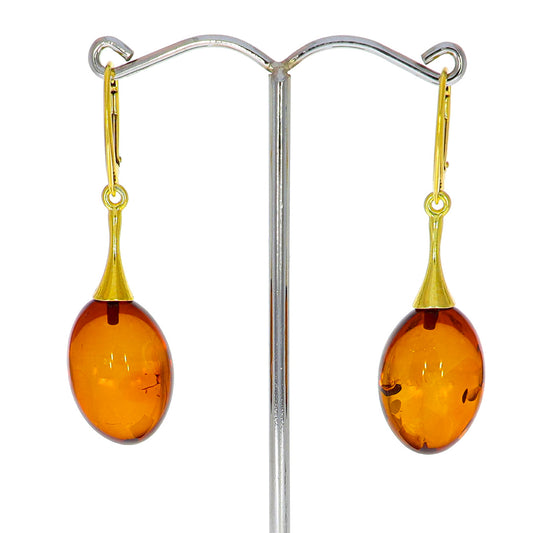 Øreringe lavet af rav og forgyldt sterlingsølv - Mod.nr. 05