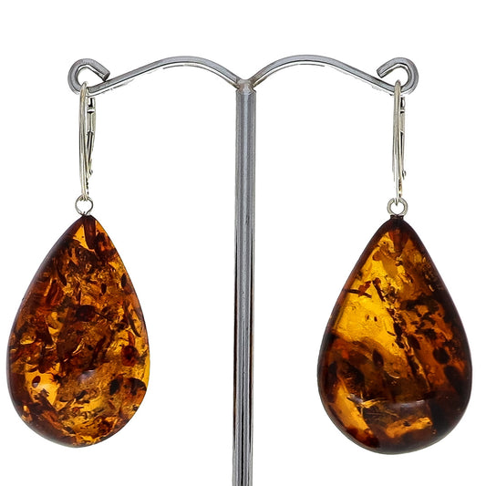 Øreringe : Dråber af Nordisk Naturrav på Sterling Sølv 925