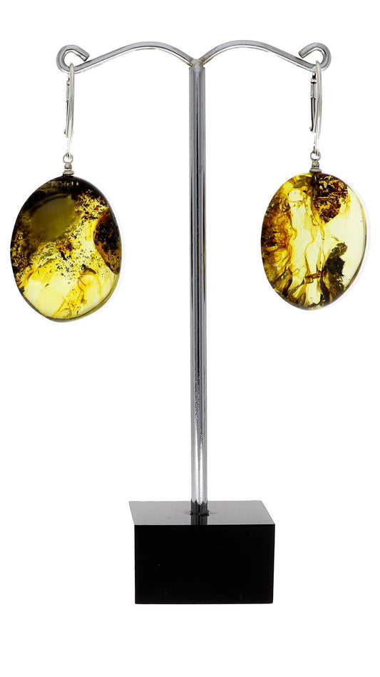 Rav øreringe med naturlige mosede flora indeslutninger & sterling sølv - 59