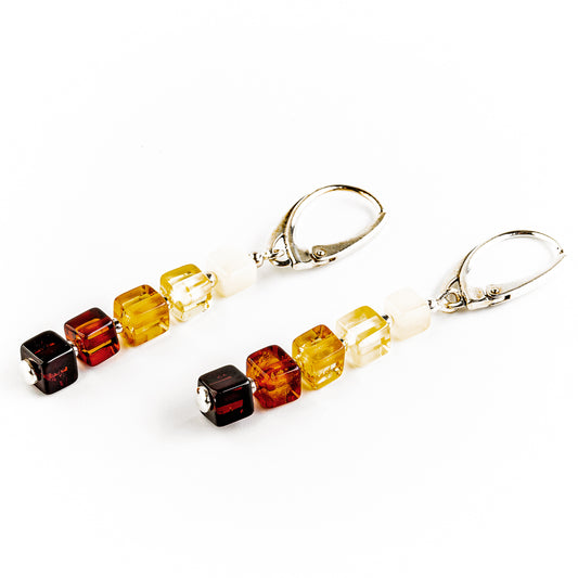 Earrings made of cube-shaped beads made of pure natural Nordic amber