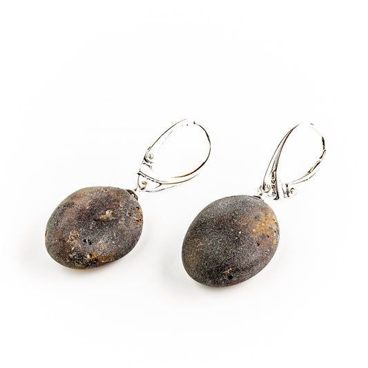 Baroque amber earrings made from 100% organic amber set in sterling silver